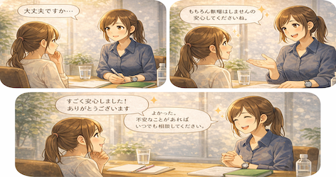 まずはLINEやメールから、ちょっとした質問だけでも大丈夫ですよ。