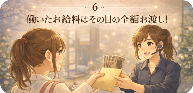 報酬は当日全額日払い。無理なく長く続けられる環境です。