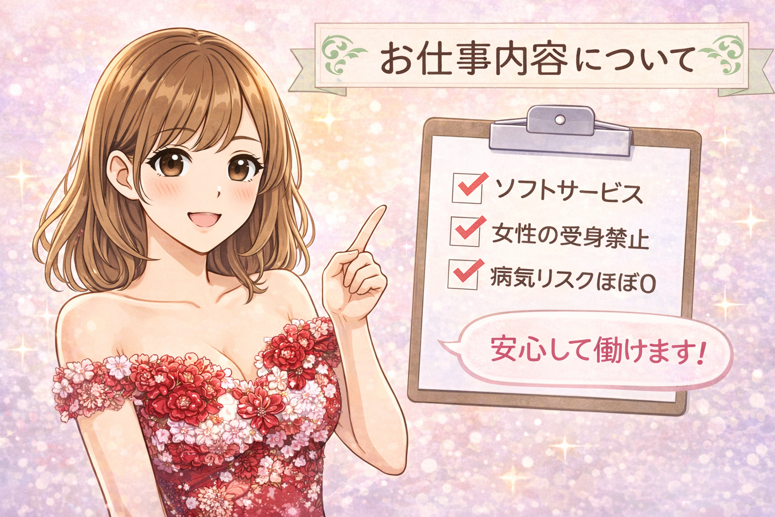- 答えはノーです。現時点で在籍している女性でも粘膜接触をプレイ内容に含まない女性でも十分に稼げております。その方法も面接でご説明させていただきます。